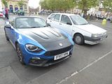 The Abarth 124 Spider was developed in parallel with the Fiat model. It does cost a lot more, and there are those who think you don’t get enough extra for your money, but those who have driven it will tell you otherwise. You certainly get more power. The 1.4 MultiAir turbo unit jumps up from 138bhp to 168bhp, while torque also increases by a modest 10Nm to 250Nm, which gives it a 0-62mph time of 6.8 seconds, which is half a second quicker than the 2.0-litre Mazda MX-5. The top speed is 143mph. It weighs just 1060kg meaning a power-to-weight ratio of 158bhp-per-tonne, and with the new Record Monza exhaust system it sounds great even at idle. The Abarth version gets a stiffer suspension setup than the regular Fiat 124 Spider, with Bilstein dampers and beefed-up anti-roll bars. Bigger Brembo brakes also feature, with aluminium calipers. It can be had with a six-speed manual or six-speed automatic transmission with paddles, and the latter gets a Sport mode for quicker shifts. Many of the UK cars sport the ‘Heritage Look’ pack, which is a no-cost option. It brings a matt black bonnet and bootlid, plus red exterior trim detailing and has proved popular. The £29,565 starting price gets you standard equipment such as cruise control, climate control, Bluetooth, a DAB radio and satnav, plus Alcantara black and red (or pure black) seat trim. The automatic gearbox is a £2,035 extra, while an optional visibility pack brings LED DRLs, auto lights and wipers and rear parking sensors. Sales ceased during 2019, with around 1800 cars having been brought into the UK, so this is always going to be a rare car, and values are already increasing at a rate reflecting its desirability and the difficulty in finding one. The Fiat version had an equally short production life and there was an example of that with the Abarths here.
