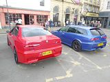 The 156 GTA cars were launched at the Frankfurt Motor Show in September 2001. Named after the Alfa Romeo GTA from the 1960s, the letters GTA meaning Gran Turismo Alleggerita (English: lightened Grand Tourer). 2,973 berlinas and 1,678 Sportwagons were built until the GTA production stopped in October 2005 as the 156 gave way to the Alfa Romeo 159. The GTA came with the 3.2 litre Bussone V6 engine (The big Busso, so called after legendary Ferrari engineer Giuseppe Busso), the largest capacity version of the much loved V6 engine. With a 93 mm bore and a 78 mm stroke giving it a capacity of 3,179 cc, it generated 250 PS (247 hp) and 220 lb/ft of torque. After market Alfa Romeo specialist Autodelta produced performance versions up to 3.7 litres and 400 PS. The European Touring Car Championship winning 156 GTA was however running a 2.0 litre 4-cylinder 300 PS engine due to class regulations. The GTA variants were equipped with either a six-speed manual transmission or six-speed Selespeed (paddles in steering wheel, hydraulically operated robotised) gearbox, had a lowered and stiffened suspension, a distinctive body kit, wider rear arches and leather interior. The suspension was specifically made for the GTA by Fiat Research Centre and Fiat Auto Design and Development Department. Steering was also made faster, only 1.7 turns from lock to lock compared to 2.1 in normal models. The GTA had also larger brakes (Brembo), with 12″ front discs and 10.8″ at the rear. The front discs were later upgraded to 13 ” to cope with the performance potential. Even though the name suggests a light car, the GTA isn’t any lighter than other 156s, as it was actually 91 kilograms (201 lb) heavier than the 2.5 litre V6 engined version. The GTA did not get the Giugiaro designed facelift introduced to the 156 in 2002, but continued with the acclaimed Walter de Silva design to the very end of production.