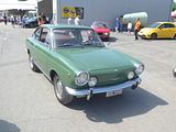Abarth produced several tuned versions of the Fiat 850 Berlina, Coupé, and Spider, with ever-increasing displacements. These belonged to the OT series of Abarth cars—standing for Omologata Turismo or “touring homologated”, which also included two-seater sports racing cars. The  Fiat-Abarth OT 850, as seen here, was Abarth’s first 850 derivative, introduced in July 1964. Its Tipo 201 engine was the regular saloon’s 847 cc inline-four brought from 34 bhp to 44 bhp. The top speed went up accordingly from 75 mph (120 kn/h) to 81 mph (130 km/h). The OT 850 could be distinguished from the standard Fiat model by its Abarth badging, an asymmetric front ornament with the Abarth shield on the right hand side and the “Fiat Abarth” script on a red field on the left, and wheels with cooling slots. From October of the same year it became available in two guises: OT 850 Oltre 130 (“Over 130”), almost unchanged from the initial model, and OT 850 Oltre 150, with a 52 bhp engine, front disc brakes and a 150 km/h (93 mph) top speed. In October 1964, Abarth added the Fiat-Abarth OT 1000. With engine displacement increased to 982 cc, it produced 60 bhp and 58 lb·ft of torque. The front brakes were changed to discs. Coupe and Spider models would follow from 1965, initially with the same 982cc engine, but it was not long before 1300, 1600 and then 2 litre engines were inserted in the car. There are not many of these in any body style in the UK, but of those that you do see, the Coupe would seem to be the most numerous and indeed, there was one of these here as well as an OT1600 Berlina.