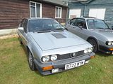 There were a couple of examples of the Alfa 75 here, the last Alfa model to be developed before the company was bought by Fiat. It was introduced in May 1985, to replace the 116 Series Giulietta with which it shared many components. It was named to celebrate Alfa’s 75th year of production. The body, designed by head of Alfa Romeo Centro Stile Ermanno Cressoni, was styled in a striking wedge shape, tapering at the front with square headlights and a matching grille. The 75 was only ever sold as a four door saloon, though at the 1986 Turin Auto Salon, a prototype 75 estate was to be seen, an attractive forerunner of the later 156 Sportwagon. This version was, however, never listed for sale, being cancelled after Fiat took control of Alfa Romeo. The car, dubbed the 75 Turbo Wagon, was made by Italian coachbuilder Rayton Fissore using a 75 Turbo as the basis. Two estate versions were to be found at the later 1987 Geneva Motor Show; one was this Turbo Wagon and the other was a 2.0 litre version named the Sportwagon. The 75 featured some unusual technical features, most notably the fact that it was almost perfectly balanced from front to rear. This was achieved by using transaxle schema — mounting the standard five-speed gearbox in the rear connected to the rear differential (rear-wheel drive). The front suspension was a torsion bar and shock absorber combination and the rear an expensive de Dion tube assembled with shock absorbers; these designs were intended to optimize the car’s handling; moreover the rear brake discs were fitted at the centre of the rear axle, near the gearbox-differential group. The engine crankshaft was bolted directly to the two-segment driveshaft which ran the length of the underside from the engine block to the gearbox, and rotated at the speed of the engine. The shaft segments were joined with elastomeric ‘doughnuts’ to prevent vibration and engine/gearbox damage. The 2.0 litre Twin Spark and the 3.0 Litre V6 were equipped with a limited slip differential. The 75 featured a then-advanced dashboard-mounted diagnostic computer, called Alfa Romeo Control, capable of monitoring the engine systems and alerting the drivers of potential faults. The 75 engine range at launch featured four-cylinder 1.6, 1.8 and 2.0 litre petrol carburettor engines, a 2.0 litre intercooled turbodiesel made by VM Motori, and a 2.5 litre fuel injected V6. In 1986, the 75 Turbo was introduced, which featured a fuel-injected 1779 cc twin-cam engine using Garrett T3 turbocharger, intercooler and oil cooler.  In 1987, a 3.0 litre V6 was added to the range and the 2.0 lire Alfa Romeo Twin Cam engine was redesigned to have now two spark plugs per cylinder, the engine was named as Twin Spark. With fuel injection and variable valve timing this engine produced 146 hp. This was the first production engine to use variable valve timing. In North America, where the car was known as the Milano, only the 2.5 and 3.0 V6s were available, from 1987 to 1989. The North American 2.5-litres were fundamentally different from their European counterparts. Due to federal regulations, some modifications were required. Most noticeable from the outside were the ‘America’ bumpers, with the typical rubber accordions in them. Furthermore, these bumpers had thick (and heavy) shock-absorbing material inside them and in addition, they were mounted to the vehicle on shock absorbers. To accommodate these shock absorbers, the ‘America’-bodies were slightly different from the European ones. The North American cars also had different equipment levels (depending on the version: Milano Silver, Milano Gold or Milano Platinum). electrically adjustable outside mirrors, electrically reclining seats and cruise control were usually optional in Europe. The car was also available with a 3-speed ZF automatic gearbox option for the 2.5 V6. Other, more common options such as electrically operated rear windows and an A/C system were standard in the USA. The USA-cars also had different upholstery styles and of course different dashboard panels also indicating speed in mph, oil pressure in psi and coolant temperature in degrees F, and as a final touch the AR control was different, including a seat belt warning light. The European-spec 2.5 V6 (2.5 6V Iniezione or 2.5QV) was officially sold only between 1985 and 1987, although some of them were not registered until 1989. Relatively few of them were sold (about 2800 units), especially when the 155 PS 1.8 Turbo was launched, which in some countries was cheaper in taxes because of its lower displacement. To create a bigger space between the V6 and the inline fours, the 2.5 was bored out to 2959 cc’s to deliver 188 PS and this new engine was introduced as the 3.0 America in 1987. As its type designation suggests, the 3.0 only came in the US-specification, with the impact-bumpers and in-boot fuel tank. However, the European ‘America’s’ were not equipped with side-markers or the door, bonnet and boot lid fortifications. Depending on the country of delivery, the 3.0 America could be equipped with a catalytic converter. In 1988 engines were updated again, the 1.8 litre carburettor version was replaced with fuel injected 1.8 i.e. and new bigger diesel engine was added to the range. In the end of 1989 the 1.6 litre carburettor version was updated to have fuel injection and 1990 the 1.8 Turbo and 3.0i V6 got some more power and updated suspension. The 3.0 V6 was now equipped with a Motronic system instead of an L-Jetronic. The 1.8 Turbo was now also available in ‘America’-spec, but strangely enough not available for the USA market. The 3.0 V6 did make it to the United States, and was sold as Milano Verde. The UK never particularly warmed to the 75 when it was new, but its reputation has got ever stronger as the car ages.
