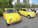 Most Abarths of the 1960s were based on regular Fiat models, and there were some of these on show as well. Smallest of these were those based on the Nuova 500, and there were a couple of them here. For the 595 SS, Abarth increased the engine capacity to 594 cc, just under the limit for the European 600cc racing sedan class. High compression 10:1 pistons were used together with a special camshaft, a specific alloy sump, Abarth valve covers and air filter, propped up engine lid and wheels were fitted and of course the exhaust system was a special in house model. This package together with lowered suspension, flared arches and 10 inch rims amounted to what was known as the Assetto Corsa SS model. These cars have become very rare as many were crashed in competition or simply rotted away due to bad rust protection in the 70s A number of recreations have been built, and these are likely such. So, not original, but still nice and still a lot of fun.