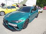 Still acclaimed as one of the best-looking saloons ever produced is this car, the fifth generation Quattroporte, a couple of which were on show. Around 25,000 of these cars were made between 2004 and 2012, making it the second best selling Maserati of all time, beaten only by the cheaper BiTurbo of the 1980s. The Tipo M139 was unveiled to the world at the Frankfurt Motor Show on 9 September 2003, with production starting in 2004. Exterior and interior design was done by Pininfarina, and the result was widely acclaimed to be one of the best looking saloons not just of its time, but ever, an opinion many would not disagree with even now. Built on an entirely new platform, it was 50 cm (19.7 in) longer than its predecessor and sat on a 40 cm (15.7 in) longer wheelbase. The same architecture would later underpin the GranTurismo and GranCabrio coupés and convertibles. Initially it was powered by an evolution of the naturally aspirated dry sump 4.2-litre V8 engine, mounted on the Maserati Coupé, with an improved output of 400 PS . Due to its greater weight compared to the Coupé and Spyder, the 0-62 mph (0–100 km/h) time for the Quattroporte was 5.2 seconds and the top speed 171 mph (275 km/h). Initially offered in only one configuration, equipped with the DuoSelect transmission, the gearbox was the weak point of the car, receiving most of the criticism from the press reviews. Maserati increased the range at the 2005 Frankfurt Motor Show, with the launch of the Executive GT and Sport GT trim levels. The Executive GT came equipped with a wood-rimmed steering wheel, an alcantara suede interior roof lining, ventilated, adaptive, massaging rear seats, rear air conditioning controls, veneered retractable rear tables, and curtain shades on the rear windows. The exterior was distinguished by 19 inch eight-spoke ball-polished wheels and chrome mesh front and side grilles. The Quattroporte Sport GT variant offered several performance upgrades: faster shifting transmission and firmer Skyhook suspensions thanks to new software calibrations, seven-spoke 20 inch wheels with low-profile tyres, cross-drilled brake rotors and braided brake lines. Model-specific exterior trim included dark mesh front and side grilles and red accents to the Trident badges, as on vintage racing Maseratis. Inside there were aluminium pedals, a sport steering wheel and carbon fibre in place of the standard wood inserts. A new automatic transmission was presented at the 2007 Detroit Motor Show, marketed as the Maserati Quattroporte Automatica.  As all three trim levels were offered in both DuoSelect and Automatica versions, the lineup grew to six models. The Quattroporte Sport GT S was introduced at the 2007 Frankfurt Motor Show. Taking further the Sport GT’s focus on handling, this version employed Bilstein single-rate dampers in place of the Skyhook adaptive system. Other changes from the Sport GT comprised a lowered ride height and 10 mm wider 295/30 rear tyres, front Brembo iron/aluminium dual-cast brake rotors and red-painted six piston callipers. The cabin was upholstered in mixed alcantara and leather, with carbon fibre accents; outside the door handles were painted in body colour, while the exterior trim, the 20 inch wheels and the exhaust pipes were finished in a “dark chrome” shade. After Images of a facelifted Quattroporte appeared on the Internet in January 2008; the car made its official début at the 2008 Geneva Motor Show. Overseen by Pininfarina, the facelift brought redesigned bumpers, side sills and side mirrors, a convex front grille with vertical bars instead of horizontal, new headlights and tail lights with directional bi-xenon main beams and LED turn signals. Inside there was a new navigation and entertainment system. All Quattroporte models now used the ZF automatic transmission, the DuoSelect being discontinued. The 4.2-litre Quattroporte now came equipped with single-rate damping comfort-tuned suspension and 18 inch wheels. Debuting alongside it was the Quattroporte S, powered by a wet-sump 4.7-litre V8, the same engine of the Maserati GranTurismo S, with a maximum power of 424 bhp and maximum torque of 361 lb·ft. In conjunction with the engine, the braking system was upgraded to cross-drilled discs on both axles and dual-cast 360 mm rotors with six piston callipers at the front. Skyhook active damping suspension and 19 inch V-spoke wheels were standard. Trim differences from the 4.2-litre cars were limited to a chrome instead of titanium-coloured front grille. The Quattroporte Sport GT S was premièred at the North American International Auto Show in January 2009. Its 4.7-litre V8 produced 440 PS (434 hp), ten more than the Quattroporte S, thanks to revised intake and to a sport exhaust system with electronically actuated bypass valves. Other mechanical changes were to the suspensions, where as on the first Sport GT S single-rate dampers took place of the Skyhook system, ride height was further lowered and stiffer springs were adopted. The exterior was distinguished by a specific front grille with convex vertical bars, black headlight bezels, red accents to the Trident badges, the absence of chrome window trim, body colour door handles and black double oval exhaust pipes instead of the four round ones found on other Quattroporte models. Inside veneers were replaced by “Titan Tex” composite material and the cabin was upholstered in mixed Alcantara and leather. This means that there are quite a number of different versions among the 25,256 units produced, with the early DuoSelect cars being the most numerous.