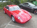 Making another appearance here was  the fabulous 1000 OTR Berlinetta Coupe recreation belonging to Frazer Whyte.  In March 1965, Carozzeria Bertone launched Fiat’s new open 2 seat 850 Spider. Carlo Abarth encouraged Nuccio Bertone to create a special Berlinetta version for the 1965 Turin Motor Show. It is believed that two cars were built, one for the Bertone stand and one for the Abarth stand. Bertone’s designer, Giorgetto Giugario, transformed the Spider into the 1000 OTR Berlinetta. Along with the steel roof, it was upgraded with an Abarth 982cc engine with 74 bhp, which was more than a 50% increase over the Fiat engine. A front radiator improved the weight distribution and cooling, through new vents in the nose. Paul Frere, the renowned Belgian acing journalist achieved 175 kmh in this slippery little car. Sadly, despite exhaustive attempts, no trace has been found of either show car. This one is owned by Frazer Whyte, a committed Fiat and Abarth enthusiast and is a replica, built for Guy Moerenhout, who famously runs the Abarth Works Museum in Belgium. When Frazer was looking through a book and saw the car, he immediately thought, ‘That would look great in my museum’. I saw the replica he’d built on Guy’s website in 2013. I loved the look of it, as well as the story behind it, so I decided I had to have it. I got in touch with Guy asking to buy it and he agreed to sell it to me.” There’s no questioning the excellent work that went into creating this replica. Given the disappearance of the real thing, there had to be some supposition about replicating it, going entirely from photos. Fraser has been in touch with Abarth Classiche, but even they don’t have any information on the original 1965 car. The original plan had been to use a post-1968 Bertone Racer coupe as a basis and graft on an early Fiat 850 Spider front end, but in the end a 1966 Spider was used, with a Racer roof transplanted on. One issue with this was the side windows, which are different on the Spider and Racer versions, the latter having a 90-degree upper corner, while the Spider has a curved profile. Black fill-in pieces had been fitted to cover the gap, but Fraser succeeded in locating a very rare Racer window – but only one. For the other side, he approached several glass companies about making a new one, before selecting Hourglass of Havant. Because the window has compound curves, it couldn’t be made in safety glass so the new one had to be plain glass, now laminated with bulletproof film. The interior was completely retrimmed, too, which was tricky because Fraser has yet to find any internal pictures of the original. You can just see that the 1965 headlining was light-coloured, which Fraser has replicated. Those beautiful seats, in leathercloth peppered with eyelets, are original items sold by Bertone, which Fraser describes as “rare as hen’s teeth”. As bought in 2013, the seats had non-standard headrests fixed with metal straps riveted to the glassfibre seat backs, which he duly removed. When Abarth showed its OTR 1000 in 1965, it had the ‘Radiale’ engine installed in the back, complete with its complex cylinder head forming two intersecting hemispherical combustion chambers, plus twin Dell’Orto carbs. One problem with this engine was that it needed a front-mounted radiator. As a result, Bertone was tasked with modifying the 850 Spider’s front end, adding a horizontal opening above and below the bumper. Fraser’s replica may not have the full-spec OTR engine but it does have a front-mounted radiator, and therefore a replica front grille. So what engine does this replica have? “It’s a 1.0-litre unit originally built by a Dutch engineer/racer called Ron Verzijlbergen to racing specification, with a hot road camshaft and high-compression pistons – in fact, too high compression, as it kept blowing head gaskets. Guy then fitted the eight-port cylinder head and twin Weber 40DCOEs to make the engine appear more like the Radiale. I took the engine to Tony Castle-Miller of Middle Barton Garage who rebuilt it using a new block, as the original had been skimmed so much. The exhaust is a period Abarth item, complete with dents and an original sticker.” As bought, the car had Koni dampers but they were shot, so the suspension has been returned to standard 850 Spider. It also had a gearbox that crunched into second and whose gearing was way too low, so Fraser has fitted a four-speed ’box from an 850 Coupe which is much better. Another alteration concerned the fuel tank location. Fraser wasn’t happy about the lack of bulkhead between the engine and tank, so he’s had a new front-mounted tank made up by CompBrake. Approaching this car, it makes a great impression. The streamlined fastback’s swooping roof pillars extend elegantly back to the rear engine cover, but cleverly the rear window is recessed, avoiding the need to change the standard engine cover hinges. As Fraser says: “People generally have no idea what it is. A lot of people assume it’s a Porsche because of its sloping headlamps and silver paint.” Back in 1966, there was talk of a production run, with one Italian magazine quoting an estimated price of 1.5 million lire (about 50% more than the regular 850 Spider) but ultimately that never happened. Instead, In March 1968, almost three years after the 1965 debut of the OTR 1000 Coupe, Bertone unveiled a brand new model for sale: the Racer. This essentially adopted the same fastback roof as the 1965 OTR 1000 prototype, although with the new front end treatment that Fiat had adopted for the 850 Sport Spider in 1968, plus a 903cc, 52hp Fiat 850 Sport engine. Like the OTR 1000, the roof was not removable, but it now had ‘Racer’ badges on the roof, which was finished in vinyl (black, ivory or green depending on main body colour). The Racer was also available, exclusively for the European market, in Racer Team form, with a non-vinyl, painted hardtop and ‘Racer 