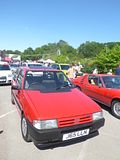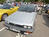 There were a number of examples of the AlfaSud here this time. These characterful small cars evoke a very positive reaction, with many people wistfully recollecting one that they, or their parents, owned back in the 1970s, but observing that the car, whilst divine to drive, simply rusted away almost before your very eyes. There are a lot more of these cars left in the UK than you might imagine, but most of them are on SORN, needing massive restorations that may or may not ever happen. That should not detract from the splendour of the models on show at this event. Alfa Romeo had explored building a smaller front wheel drive car in the 1950s but it was not until 1967 that firm plans were laid down for an all-new model to fit in below the existing Alfa Romeo range. It was developed by Austrian Rudolf Hruska, who created a unique engineering package, clothed in a body styled by Giorgetto Giugiaro of ItalDesign. The car was built at a new factory at Pomigliano d’Arco in southern Italy, hence the car’s name, Alfa Sud (Alfa South). January 18, 1968, saw the registration at Naples of a new company named “Industria Napoletana Costruzioni Autoveicoli Alfa Romeo-Alfasud S.p.A.”. 90% of the share capital was subscribed by Alfa Romeo and 10% by Finmeccanica, at that time the financial arm of the government controlled IRI. Construction work on the company’s new state sponsored plant at nearby Pomigliano d’Arco began in April 1968, on the site of an aircraft engine factory used by Alfa Romeo during the war. The Alfasud was shown at the Turin Motor Show three years later in 1971 and was immediately praised by journalists for its styling. The four-door saloon featured an 1,186 cc Boxer water-cooled engine with a belt-driven overhead camshaft on each cylinder head. It also featured an elaborate suspension setup for a car in its class (MacPherson struts at the front and a beam axle with Watt’s linkage at the rear). Other unusual features for this size of car were four-wheel disc brakes (with the front ones being inboard) and rack and pinion steering. The engine design allowed the Alfasud a low bonnet line, making it very aerodynamic (for its day), and in addition gave it a low centre of gravity. As a result of these design features, the car had excellent performance for its engine size, and levels of roadholding and handling that would not be equaled in its class for another ten years. Despite its two-box shape, the Alfasud did not initially have a hatchback. Some of the controls were unorthodox, the lights, turn indicators, horn, wipers and heater fan all being operated by pulling, turning or pushing the two column stalks. In November 1973 the first sport model joined the range, the two-door Alfasud ti—(Turismo Internazionale, or Touring International).Along with a 5-speed gearbox, it featured a more powerful version of the 1.2 engine, brought to 67 hp by adopting a Weber twin-choke carburettor; the small saloon could reach 160 km/h. Quad round halogen headlamps, special wheels, a front body-colour spoiler beneath the bumper and rear black one around the tail distinguished the “ti”, while inside there were a three-spoke steering wheel, auxiliary gauges, leatherette/cloth seats, and carpets in place of rubber mats. In 1974, Alfa Romeo launched a more upscale model, the Alfasud SE. The SE was replaced by the Alfasud L (Lusso) model introduced at the Bruxelles Motor Show in January 1975. Recognisable by its bumper overriders and chrome strips on the door sills and on the tail, the Lusso was better appointed than the standard Alfasud (now known as “normale”), with such features as cloth upholstery, headrests, padded dashboard with glove compartment and optional tachometer. A three-door estate model called the Alfasud Giardinetta was introduced in May 1975. It had the same equipment of the Alfasud “L”. It was never sold in the UK and these models are particularly rare now. The Lusso model was produced until 1976, by then it was replaced with the new Alfasud 5m (5 marce, five speed) model, the first four-door Alfasud with a five-speed gearbox. Presented at the March 1976 Geneva Motor Show, it was equipped like the Lusso it replaced.  In late 1977 the Alfasud Super replaced the range topping four-door “5m”; it was available with both the 1.2- and 1.3-litre engines from the “ti”, though both equipped with a single-choke carburettor.The Super introduced improvements both outside, with new bumpers including large plastic strips, and inside, with a revised dashboard, new door cards and two-tone cloth seats. Similar upgrades were applied to the Giardinetta. In May 1978 the Sprint and “ti” got new engines, a 78 hp 1.3 (1,350 cc) and a 84 hp 1.5 (1,490 cc), both with a twin-choke carburettor.  At the same time the Alfasud ti received cosmetic updates (bumpers from the Super, new rear spoiler on the boot lid, black wheel arch extensions and black front spoiler) and was upgraded to the revised interior of the Super. The 1.3 and 1.5 engines were soon made available alongside the 1.2 on the Giardinetta and Super, with a slightly lower output compared to the sport models due to a single-choke carburettor. All Alfasuds were upgraded in 1980 with plastic bumpers, new instrument panel, headlamps and rear lights as well as other revisions. The Ti version was now fitted with a twin-carburettor version of the 1490 cc engine that had been fitted to the Sprint the previous year, developing 95 bhp A three-door hatchback was added to the range in 1981 in either SC or Ti trim and the two-door Ti and Giardinetta were deleted from most markets around this time. Belatedly in 1982 the four-door cars were replaced by five-door versions as by now, most of its competitors were producing a hatchback of this size, although some also produced a saloon alternative. The range was topped by the five-door Gold Cloverleaf, featuring the 94 hp engine from the Ti and enhanced interior trim. In 1983 an attempt 