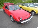 Abarth, in 1973, developed the Abarth X1/9 Prototipo to replace the 124 Spider Abarth as Fiat’s main rally car. Ultimately, the parallel 131 Abarth project was chosen over the X1/9 as the main rally competition platform. The X1/9 Prototipo used an 1840 cc engine (a bored out 1600 cc 124-derived unit) with a custom 16-valve cylinder head fed by twin 44 mm Weber IDF carburettors. Externally the cars sported flared wheel-arches, a small “duck tail” spoiler and an F1 style air intake designed to feed the carburettors cool air from above the cars roof. All the X1/9 Prototipos were raced in the traditional Abarth lime-green/yellow and orange/pink colour scheme. The prototype nature of the X1/9 Prototipo project means that the exact number of cars produced is impossible to define. Components and entire body-shells were routinely swapped and replaced as part of the development process, but it is believed that 5 genuine cars were produced. There have been several recreations made since then.
