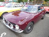 The first car was called the Alfa Romeo Giulia Sprint GT, and was revealed at a press event held at the then newly opened Arese plant on 9 September 1963, and displayed later the same month at the Frankfurt Motor Show. In its original form the Bertone body is known as scalino (step) or “step front”, because of the leading edge of the engine compartment lid which sat 1/4 an inch above the nose of the car. The Giulia Sprint GT can be distinguished from the later models by a number of features including: Exterior badging: Alfa Romeo logo on the front grille, a chrome script reading “Giulia Sprint GT” on the boot lid, and rectangular “Disegno di Bertone” badges aft of the front wheel arches; flat, chrome grille in plain, wide rectangular mesh without additional chrome bars; single-piece chrome bumpers; no overriders. Inside the cabin the padded vinyl dashboard was characterised by a concave horizontal fascia, finished in grey anti-glare crackle-effect paint. Four round instruments were inset in the fascia in front of the driver. The steering wheel was non-dished, with three aluminium spokes, a thin bakelite rim and a centre horn button. Vinyl-covered seats with cloth centres and a fully carpeted floor were standard, while leather upholstery was an extra-cost option. After initially marketing it as a four-seater, Alfa Romeo soon changed its definition of the car to a more realistic 2+2. The Giulia Sprint GT was fitted with the 1,570 cc version of Alfa Romeo’s all-aluminium twin cam inline four (78 mm bore × 82 mm stroke), which had first debuted on the 1962 Giulia Berlina. Breathing through two twin-choke Weber 40 DCOE 4 carburettors, on the Sprint GT this engine produced 105 hp at 6,000 rpm. Like all subsequent models, the Sprint GT was equipped with an all-synchromesh 5-speed manual transmission. The braking system comprised four Dunlop disc brakes and a vacuum servo. The rear brakes featured an unusual arrangement with the slave cylinders mounted on the axle tubes, operating the calipers by a system of levers and cranks. According to Alfa Romeo the car could reach a top speed of “over 180 km/h (112 mph)”. In total 21,902 Giulia Sprint GT were produced from 1963 to 1965, when the model was superseded by the Giulia Sprint GT Veloce. Of these 2,274 were right hand drive: 1,354 cars fully finished in Arese, and 920 shipped in complete knock-down kit form for foreign assembly. For 1966, the Giulia Sprint GT was replaced by the Alfa Romeo Giulia Sprint GT Veloce, which was very similar but featuring a number of improvements: a revised engine—slightly more powerful and with more torque—better interior fittings and changes to the exterior trim. Alongside the brand new 1750 Spider Veloce which shared its updated engine the Sprint GT Veloce was introduced at the 36th Geneva Motor Show in March 1966, and then tested by the international specialist press in Gardone on the Garda Lake.  Production had began in 1965 and ended in 1968. The Giulia Sprint GT Veloce can be most easily distinguished from other models by the following features: badging as per Giulia Sprint GT, with the addition of round enamel badges on the C-pillar—a green Quadrifoglio (four-leaf clover) on an ivory background—and a chrome “Veloce” script on the tail panel; black mesh grille with three horizontal chrome bars; the grille heart has 7 bars instead of 6; stainless steel bumpers, as opposed to the chromed mild steel bumpers on the Giulia Sprint GT. The bumpers are the same shape, but are made in two pieces (front) and three pieces (rear) with small covers hiding the joining rivets. Inside the main changes from the Giulia Sprint GT were imitation wood dashboard fascia instead of the previous anti-glare grey finish, front seats revised to a mild “bucket” design, and a dished three aluminium spoke steering wheel, with a black rim and horn buttons through the spokes. The Veloce’s type 00536 engine, identical to the Spider 1600 Duetto’s, featured modifications compared to the Giulia Sprint GT’s type 00502—such as larger diameter exhaust valves. As a result it produced 108 hp at 6,000 rpm, an increase of 3 hp over the previous model, and significantly more torque. The top speed now exceeded 185 km/h (115 mph). Early Giulia Sprint GT Veloces featured the same Dunlop disc brake system as the Giulia Sprint GT, while later cars substituted ATE disc brakes as pioneered on the GT 1300 Junior in 1966. The ATE brakes featured an handbrake system entirely separate from the pedal brakes, using drum brakes incorporated in the rear disc castings. Though the Sprint GT Veloce’s replacement—the 1750 GT Veloce—was introduced in 1967, production continued throughout the year and thirty final cars were completed in 1968.  By then total Giulia Sprint GT Veloce production amounted to 14,240 examples. 1,407 of these were right hand drive cars, and 332 right hand drive complete knock-down kits. The Alfa Romeo 1750 GT Veloce (also known as 1750 GTV) appeared in 1967 along with the 1750 Berlina sedan and 1750 Spider. The same type of engine was used to power all three versions; this rationalisation was a first for Alfa Romeo. The 1750 GTV replaced the Giulia Sprint GT Veloce and introduced many updates and modifications. Most significantly, the engine capacity was increased to 1779 cc displacement. Peak power from the engine was increased to 120 hp at 5500 rpm. The stroke was lengthened from 82 to 88.5 mm over the 1600 engine, and a reduced rev limit from 7000 rpm to 6000 rpm. Maximum torque was increased to 137 lb·ft at 3000 rpm. A higher ratio final drive was fitted (10/41 instead of 9/41) but the same gearbox ratios were retained. The result was that, on paper, the car had only slightly improved performance compared to the Giulia Sprint GT Veloce, but on the road it was much more flexible to drive and it was easier to maintain higher average speeds for fast touring. For the United States market, the 1779 c