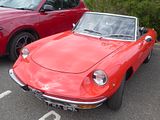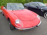 Next up was this supremely elegant Giulia Spider. Along with the equally pretty Coupe model, this started out as part of the Giulietta range, but in later life adopted Giulia badging. This the more commonly seen of the pair, the lovely Giulia Spider 1600. Alfa had followed up the 1950 launch of the 1900 Berlina with a smaller model, the Giulietta. Known as the Type 750 and later 101 Series, the Giulietta evolved into a family of models. The first to be introduced was the Giulietta Sprint 2+2 coupé at the 1954 Turin Motor Show. Designed by Franco Scaglione at Bertone, it was produced at the coachbuilder’s Grugliasco plant near Turin. A year later, at the Turin Motor Show in April 1955, the Sprint was joined by the 4-door saloon Berlina. In mid 1955, the open two-seat Giulietta Spider, featuring convertible bodywork by Pininfarina, and it was one of these achingly pretty cars that was to be seen here. Alfa replaced the Giulietta with the Giulia in 1962, but as the Coupe and Spider were not ready, the Giulietta based models were kept in production, and renamed as Giulia. They gained a larger 1600cc engine, and this meant that the bonnet needed to be raised a little to accommodate the new unit, so the easy recognition beyond Giulietta and Giulia Spiders is whether there is a flat bonnet or one with a slight hump and a vent in it.