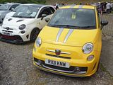 The first of the special production models was the 695 Tributo Ferrari and there was one example of the model at the event. Most of these cars are tucked away in collections, never being used, so it was good to see this one. You got more power than was available in the standard cars at the time, with the engine uprated to 180 bhp, thanks to a different Garrett turbocharger. The spec included a MTA (Manual Transmission Automated) electromechanical transmission with paddle shifter, unique to this version 17 inch alloy wheels with performance tyres, Brembo multi-section discs with fixed 4-piston calipers, “Record Monza” variable back-pressure “dual mode” exhaust, Magneti Marelli Automotive Lighting xenon headlights, “Abarth Corsa by Sabelt” seats in black leather upholstery with carbon fibre shell and seat base, black leather steering wheel with red leather inserts and a tricolour hub, Jaeger instrument panel, non-slip aluminium foot wells, Scorpion racing pedals, special kick plates and a plate bearing the vehicle series number. The Tributo Ferrari was unveiled at the 2009 Frankfurt Motor Show, with deliveries starting in 2010. Four colours were offered: Grey, Abu Dhabi Blue, Scuderia Red and finally Yellow. Of these the red and yellow cars were more numerous, but the car remained rare as it was fearsomely expensive. Just how expensive depended on the dealer, as in a move that only the Italians could make, they were all first registered in Italy and so technically were used cars by the time these right hand drive machines arrived on UK soil, which mean that the dealers could charge what they wanted. Most aimed somewhere between £32 and £36,000, a lot for a car of this size. Nevertheless, they all sold, though many ended up on another boat, off to right hand drive Asian markets, which is why they are a rare sight these days.