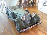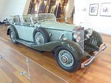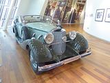 500K Tourer: The Mercedes-Benz 500K (W29) is a grand touring car built by Mercedes-Benz between 1934 and 1936. First exhibited at the 1934 Berlin Motor Show. It is distinguished from the 500 sedan by the “K” for Kompressor (German for supercharger). it succeeded the Mercedes-Benz 380 introduced the previous year, It offered both a larger, more powerful engine and more opulent coachwork to meet customers’ demands for greater luxury and performance. The 500K used the same independent suspension as had been introduced on the 380, with a double wishbone front axle, double-joint swing axle at the rear, and separate wheel location, coil springs and damping, a world first. Consequently, it was a more comfortable and better handling car than Mercedes’ previous S/SS/SSK generation of roadsters from the 1920s, and offered greater appeal to buyers, particularly the growing number of well-heeled female drivers of the time. Pressing the throttle pedal fully engaged the Roots supercharger, inducing the five litre straight-eight engine to produce up to 160 hp and making the car capable of over 160 km/h (100 mph), while consuming fuel at the rate of up to 30 L/100 km (9.4 mpg‑imp; 7.8 mpg‑US) as it did so. Three different chassis and eight bodies were available for customers; the two longer “B” and “C” four-seat cabriolet versions rode on a wheelbase of 3,290 mm (129.5 in), and would later be used on other sedan and touring car models. The short “A” chassis, with a 2,980 mm (117.3 in) wheelbase, underpinned the two-seater models: the Motorway Courier, and the 1936 Special Roadster which offered the highest performance. All models featured such advanced equipment as safety glass, hydraulic brakes, and a 12-volt electrical system sufficient to bear the load of the electric windscreen wipers, door locks, and indicators. Of the combined production of the 500K (342 cars), including 29 “Special Roadsters” during its two years in production, and the later 540K (419 cars) from Sindelfingen, the deliveries were: 70 chassis without body; 28 open cars (offener Tourenwagen); 23 sedans with 4 doors (mainly 500K); 29 sedans with 2 doors (mainly 540K); 12 Coupés; 6 Autobahn cruisers (Autobahn-kurier); 58 Roadsters; 116 Cabriolets A; 296 Cabriolets B; 122 Cabriolets C.